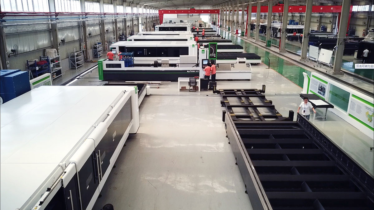在卓總的陪同下,長堀先生一行先后參觀了徐州生產基地的鋼材開料車間、機床焊接車間、精密機械加工車間、熱處理車間、大型機床龍門加工車間和金屬激光切割設備整機裝配調試車間等。在參觀過程中,卓總向長堀先生介紹,自2021年以來,大族粵銘激光集團一次性向徐州生產基地追加投資1億元人民幣,新建了現代化智能生產車間35000平米,購置了數十臺套行業內領先的智能化龍門數控加工中心、機床噴涂生產線、熱處理設備和精密機械加工設備,招聘并精心培養了100多名熟練的高素質技術工人。從而使徐州生產基地具備了大型金屬激光切割裝備從開料、焊接、熱處理、機加工、表面噴涂到整機裝配與調試的全流程自有可控的大批量生產制造能力,建立起了全流程可掌控的產品質量管理體系,從根本上確保了松谷智能裝備金屬激光切割裝備的快速交付能力和過硬的產品品質,為徐州生產基地后期的高質量發展奠定了堅實的基礎。