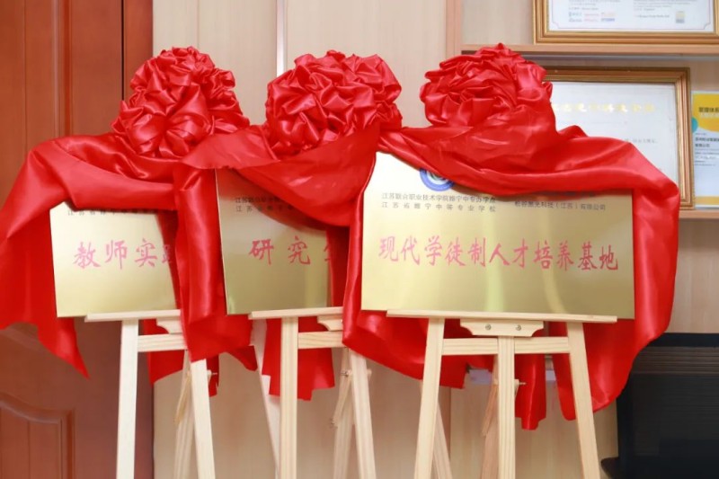 活動現場,睢寧中專與松谷激光正式簽訂校企合作協議,雙方共同為聯合創建的松谷激光“現代學徒制人才培養基地”、“研究生工作站”、“教師實踐教學基地”揭牌。這標志著為睢寧職業教育與產業發展的深度融合搭建了全新的平臺。